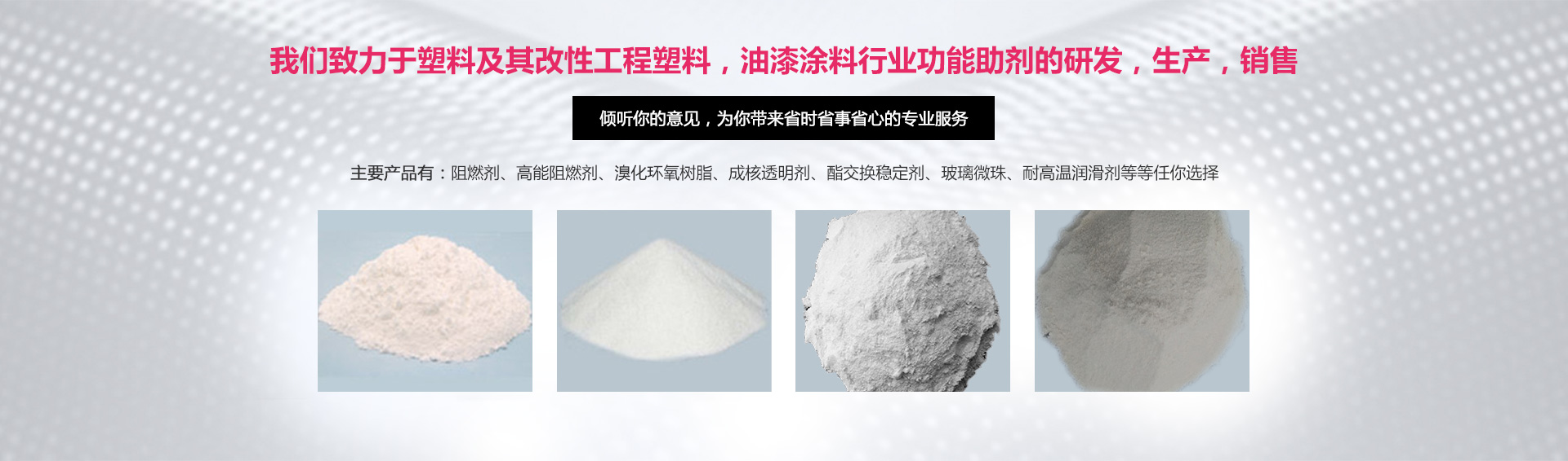 專注各種阻燃劑的研發與生產:尼龍阻燃劑 , 無鹵阻燃劑 , 玻璃微珠 , 灼熱絲